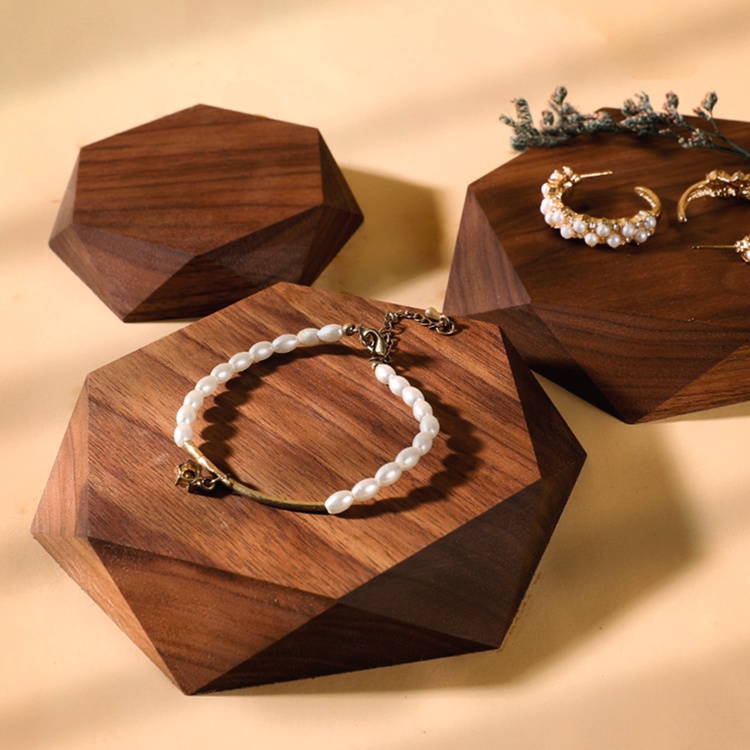 Black Walnut Solid Wood Hexagon Jewelry Tray Jewelry Display Stand Wooden Ornaments Bracelet Display Photo Props Very well made.
