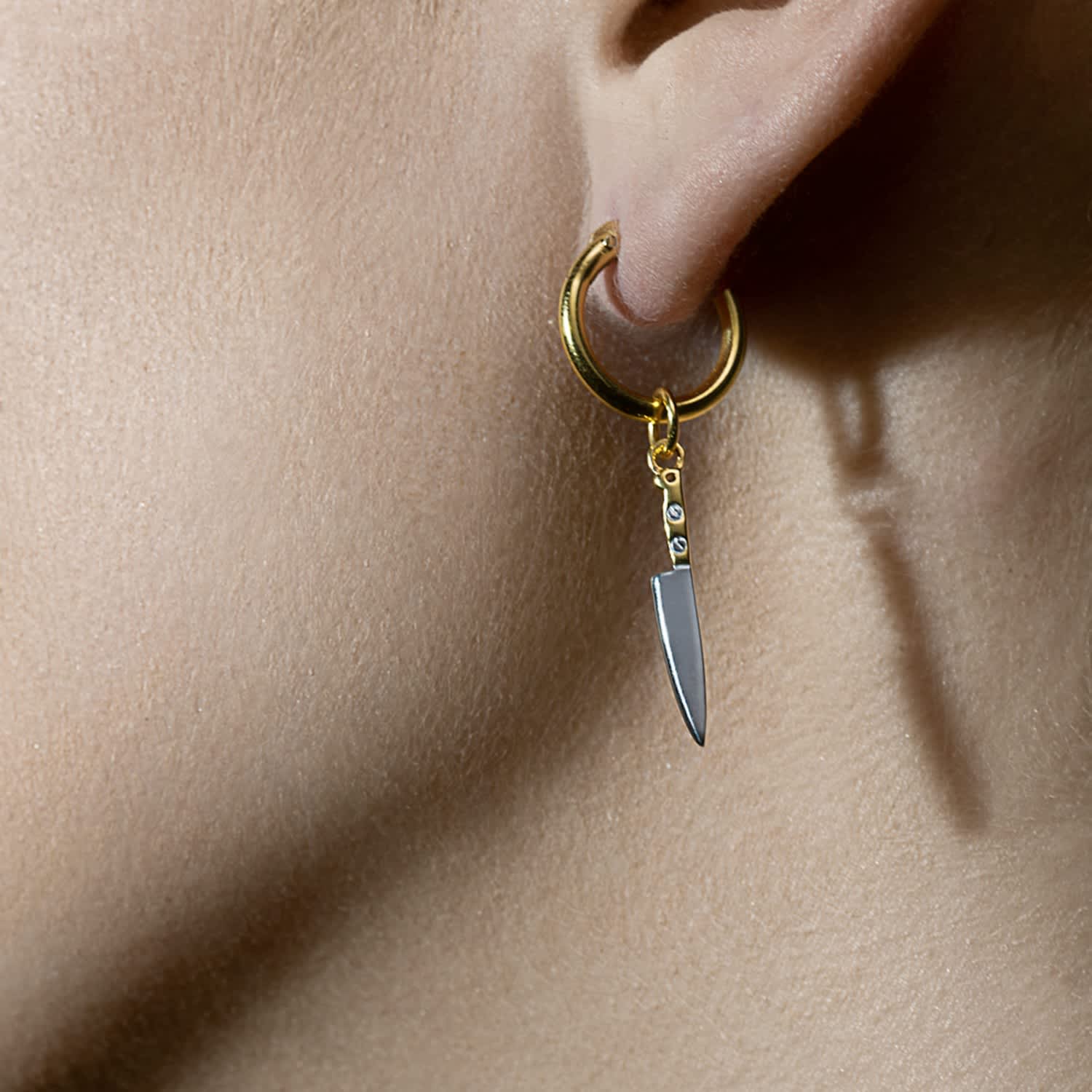 Mini 2 Tone Knife On Gold Plated Hoop Earring True Rocks Wolf Very well made.