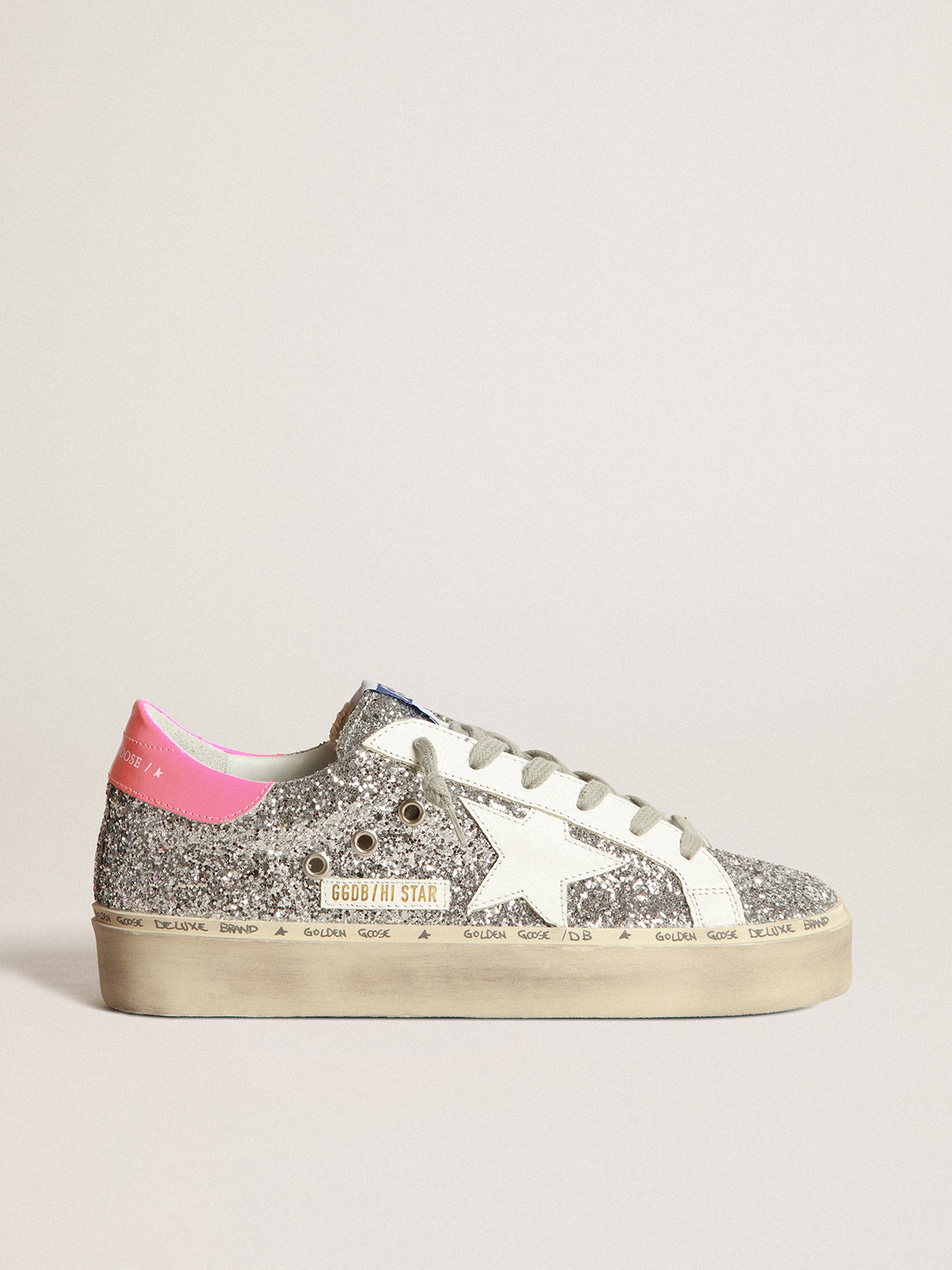 Hi Star sneakers with silver glitter and fuchsia heel tab Golden Very well made.