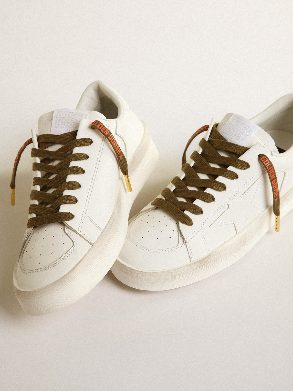 Lacci in cotone bianco con logo color oro a contrasto Golden Goose Very well made.