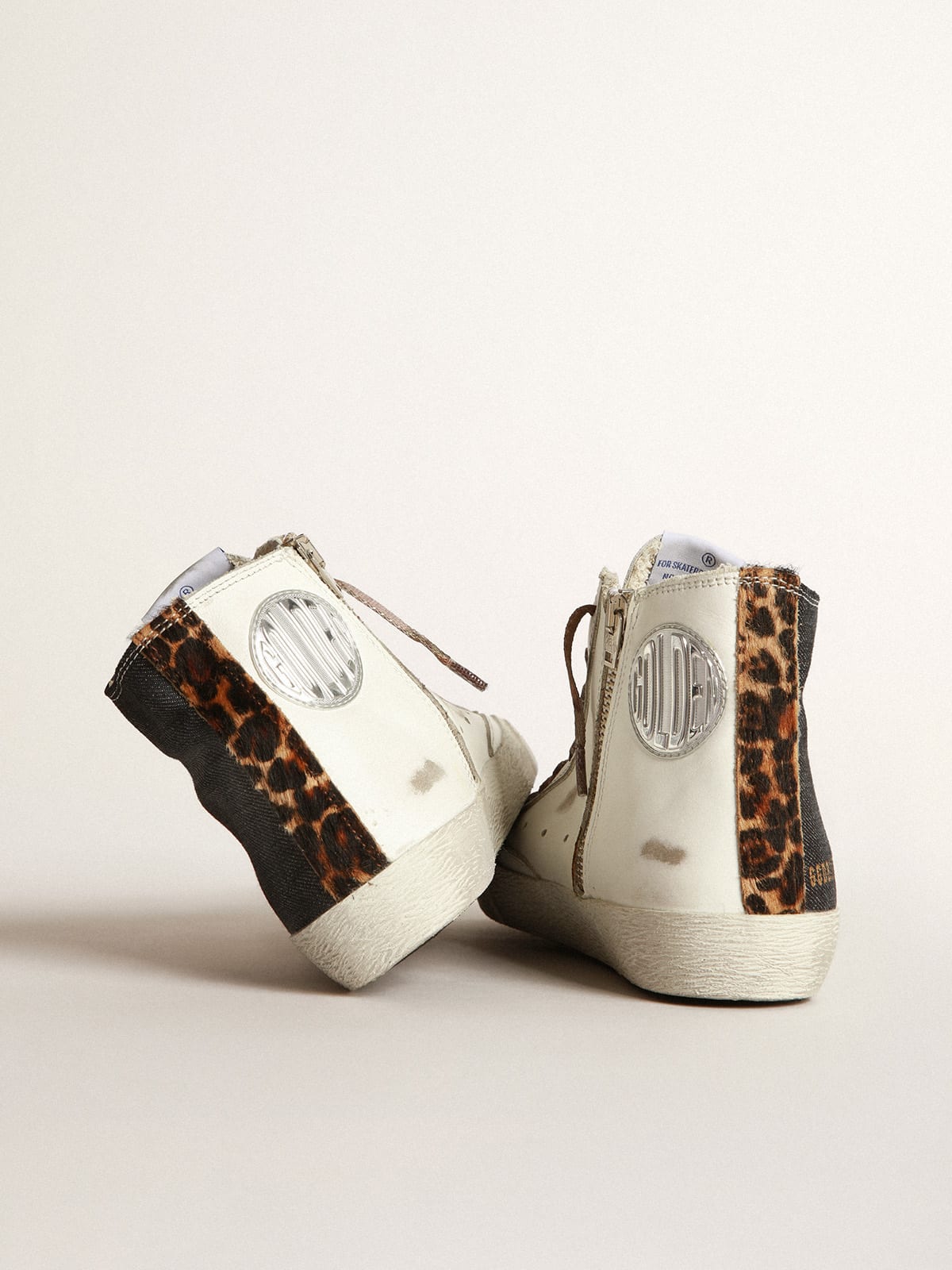 Men s Francy LTD sneakers in white leather and black denim with gold laminated leather star Very well made.