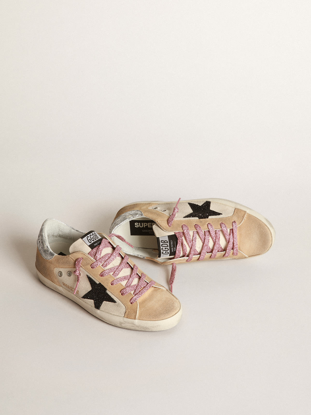 Super Star sneakers in sand coloured suede with silver heel tab Very well made.