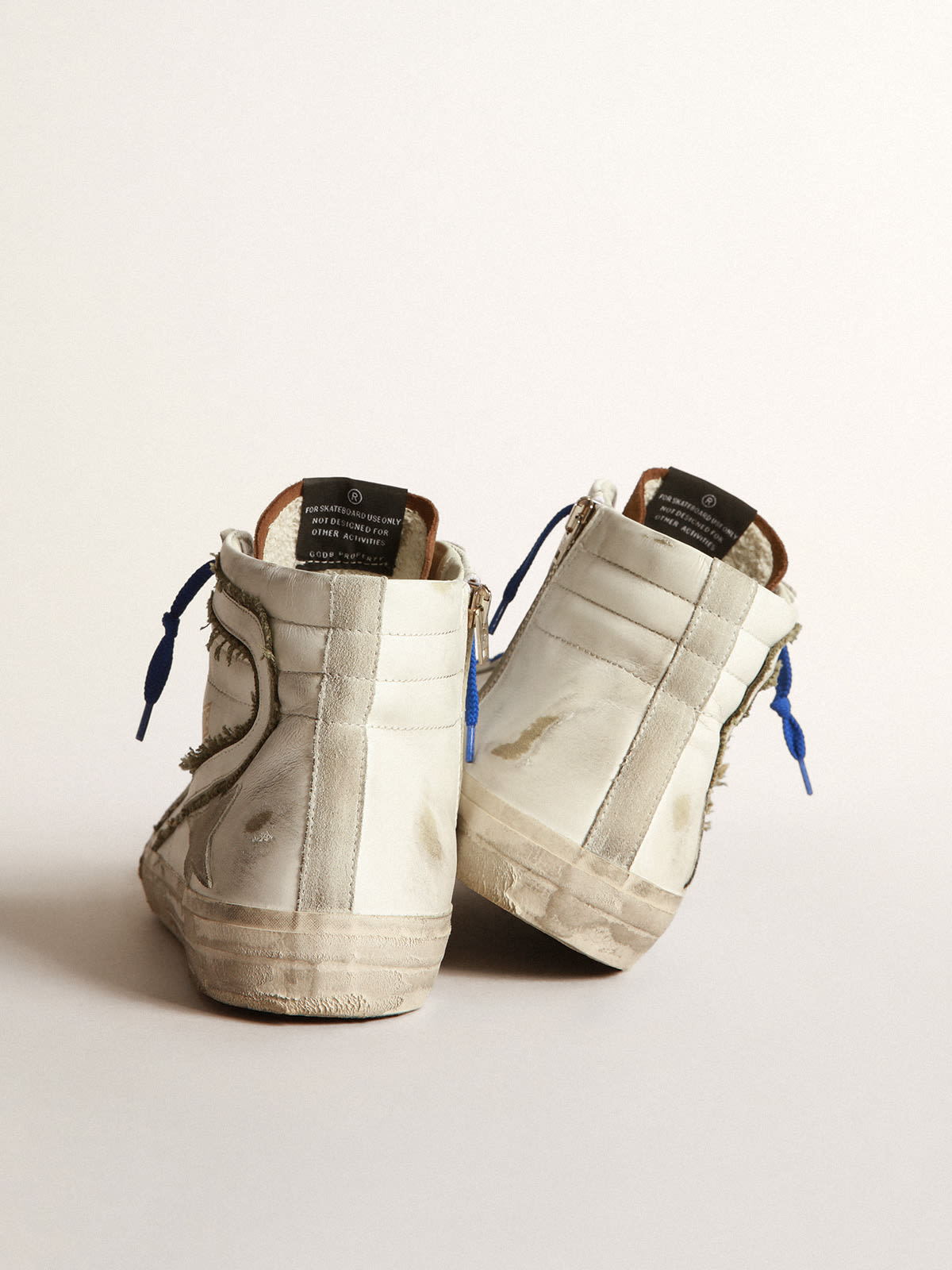 Slide in leather and suede with inserts in raw edge canvas Very well made.