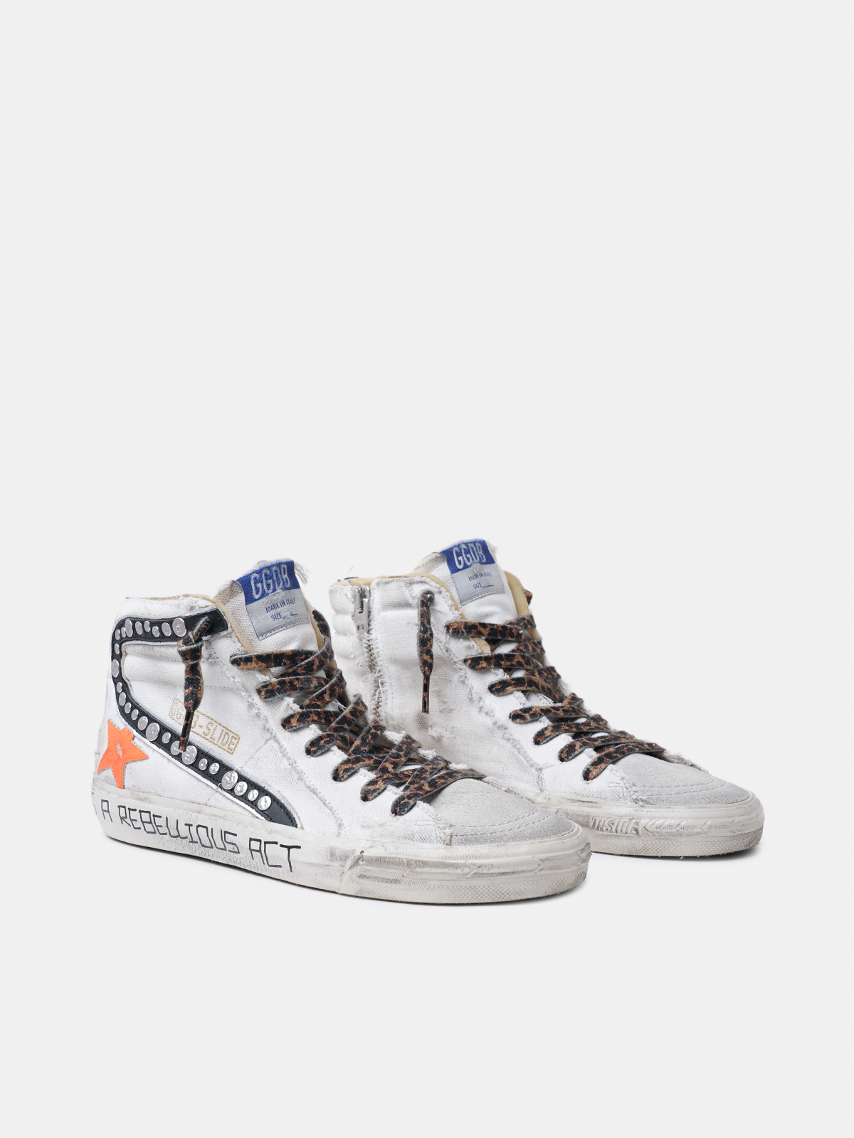 Slide sneakers in canvas with decorative studs Golden Goose Very well made.