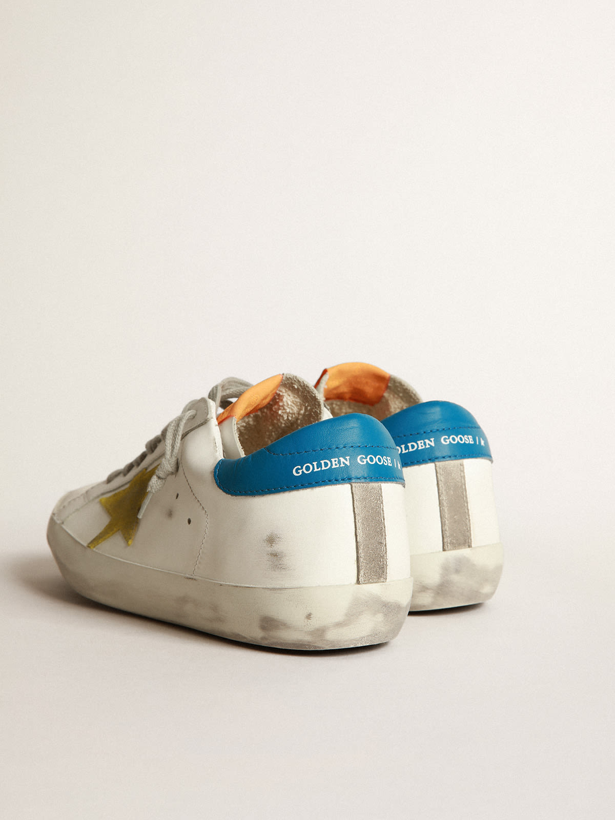 Super Star sneakers with yellow suede star and indigo leather heel tab Very well made.