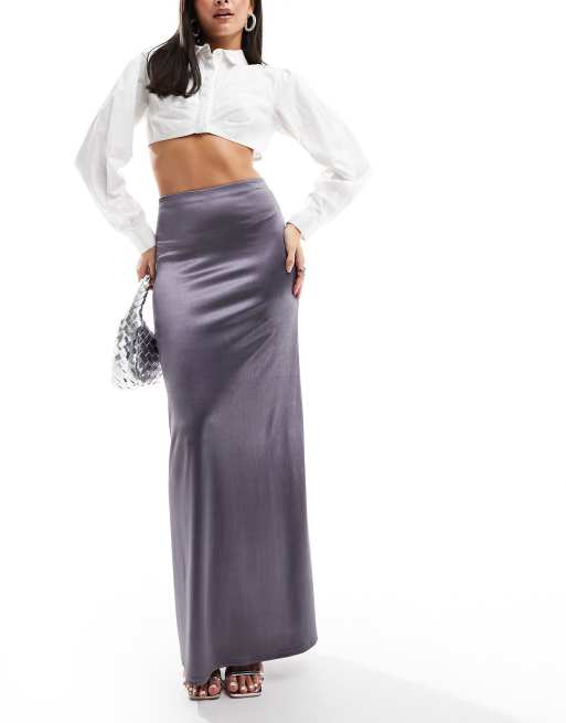 ASOS DESIGN Gonna lunga in twill di raso color blu acciaio Very well made.