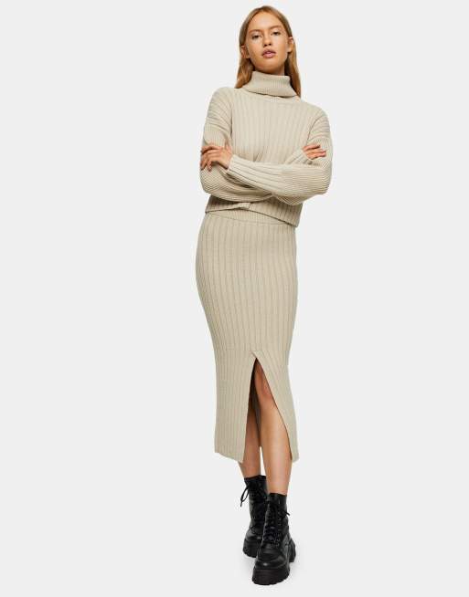 Topshop Gonna in maglia beige con spacco centrale Very well made.