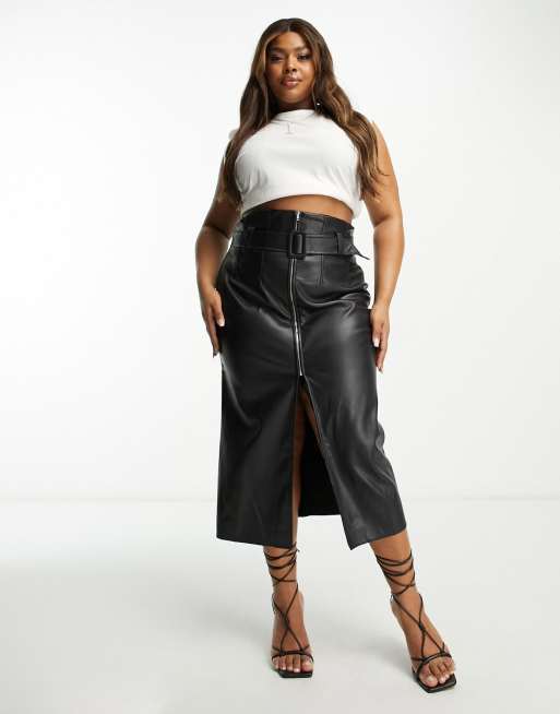 ASOS DESIGN Curve Gonna midi in pelle sintetica nera con cintura Very well made.