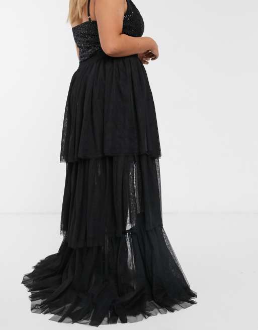 Lace Beads Plus Gonna lunga asimmetrica a balze in tulle nero Very well made.