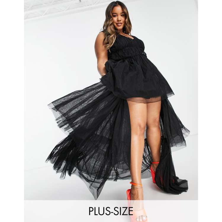 Lace Beads Plus Vestito corto in tulle nero a balze con gonna asimmetrica e scollo profondo Very well made.