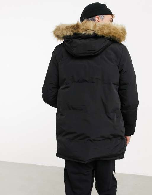 Good For Nothing parka jacket in black with faux fur hood Very well made.