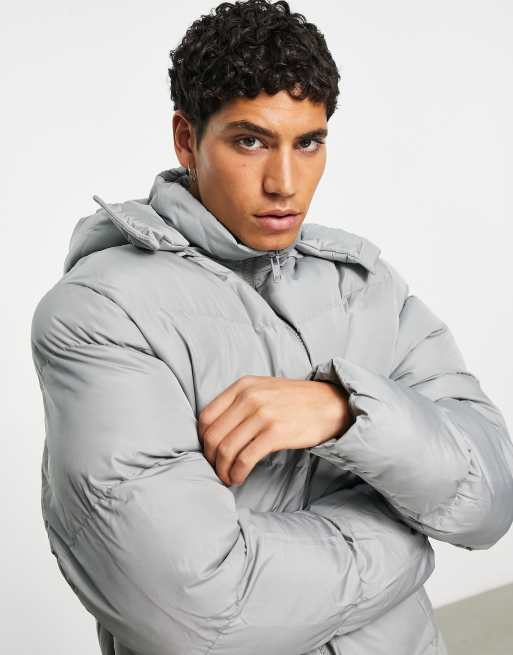 ASOS DESIGN puffer jacket with detachable hood in grey Very well made.