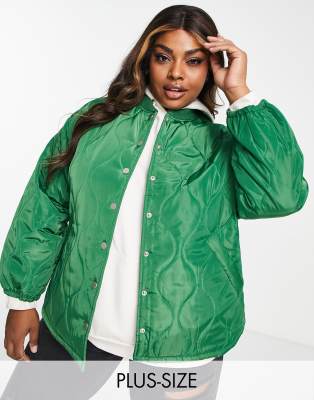 Pieces Curve exclusive quilted bomber jacket in green Very well made.