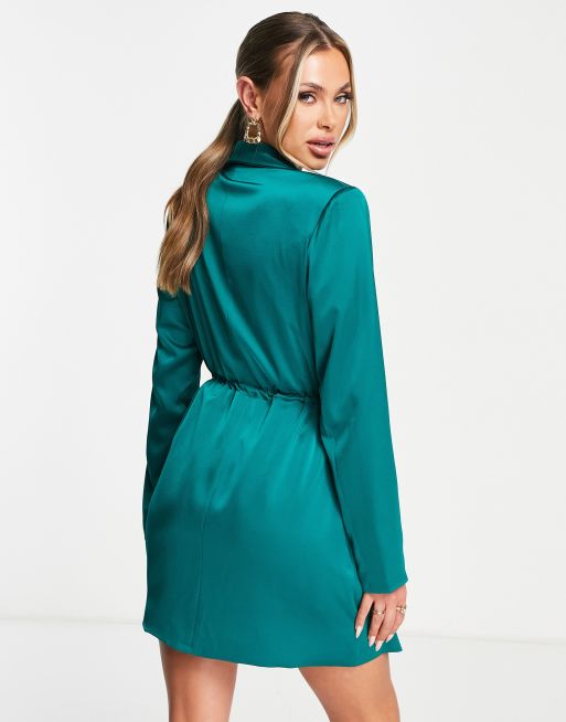 Aria Cove satin blazer dress with elasticated waist in green Very well made.