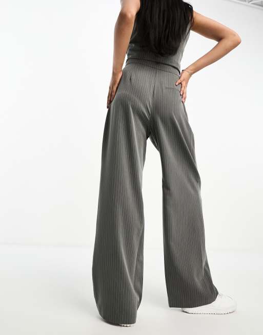 ASOS DESIGN wide leg pleated striped pants in grey Very well made.