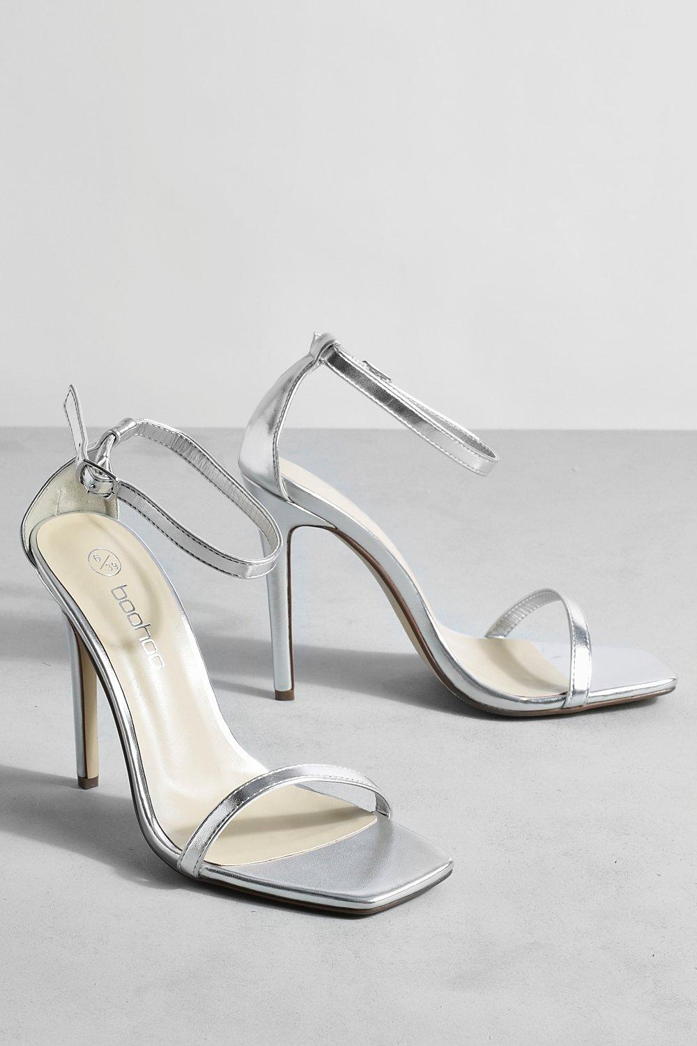 Silver Pu Square Barely There Strappy High Heels PrettyLittleThing Very well made.
