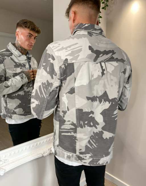 ASOS DESIGN denim jacket with camo print in grey Very well made.