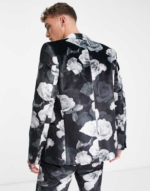 Twisted Tailor Lincoln skinny suit jacket in black with grey floral print Very well made.