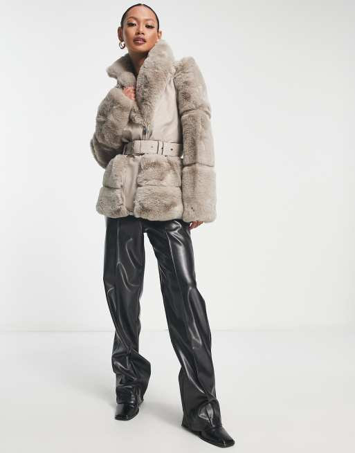 River Island belted faux fur biker jacket in light grey ASOS Very well made.