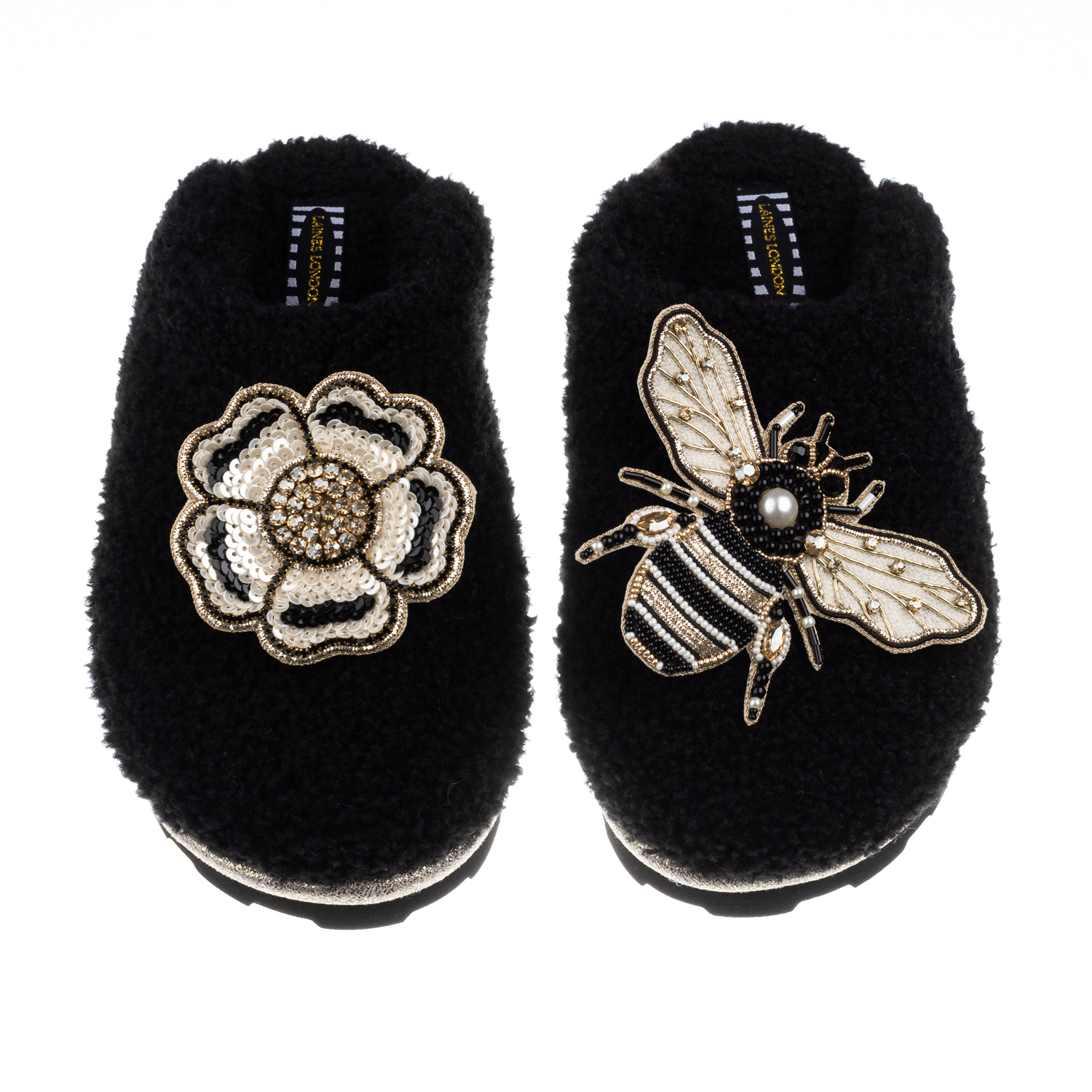 NEW IN Monaveen BLACK BUMBLE BEE Leather Slipper Mules MONAVEEN Very well made.