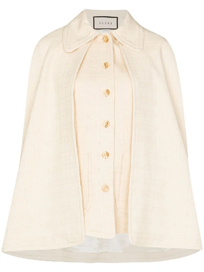 White Boucl wool blend tweed cape Gucci MATCHES UK Very well made.
