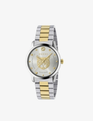 Gucci G Timeless 38mm Feline Dial Two Tone Bracelet Ladies Watch Very well made.