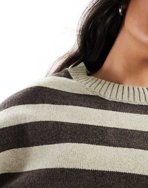 Pull Bear oversized chenille knitted jumper in brown stripe ASOS Very well made.