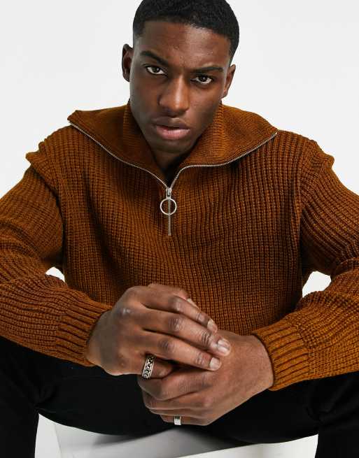 ASOS DESIGN knitted oversized rib half zip jumper in brown melange Very well made.