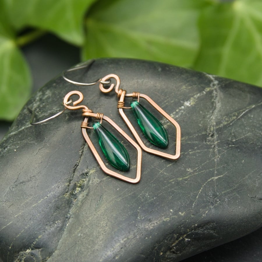 Hammered Copper Wire Earrings with Green Dagger Folksy Very well made.