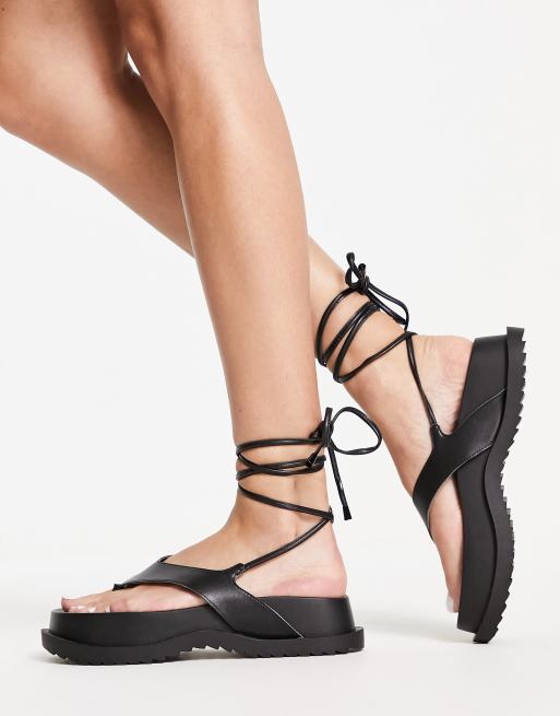 Bershka chunky flip flop with ankle strap in black Very well made.
