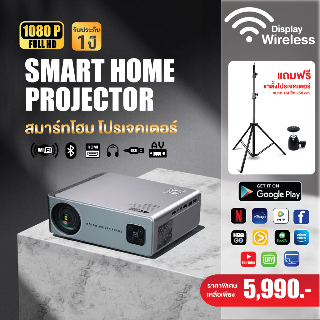 1080P FULL HD M7G Smart Home Projector Android 9.0 WiFi Very well made.