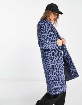 Helene Berman animal print wool blend college coat in blue Very well made.