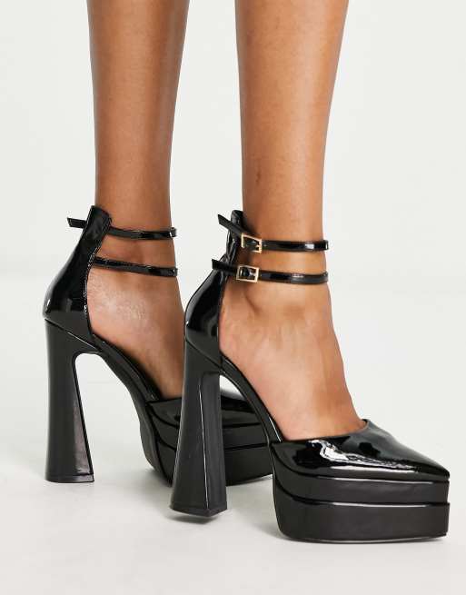 Simmi London double platform stiletto heels with pointed toe in black patent Very well made.