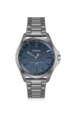 HUGO Blue dial watch in grey plated steel Very well made.