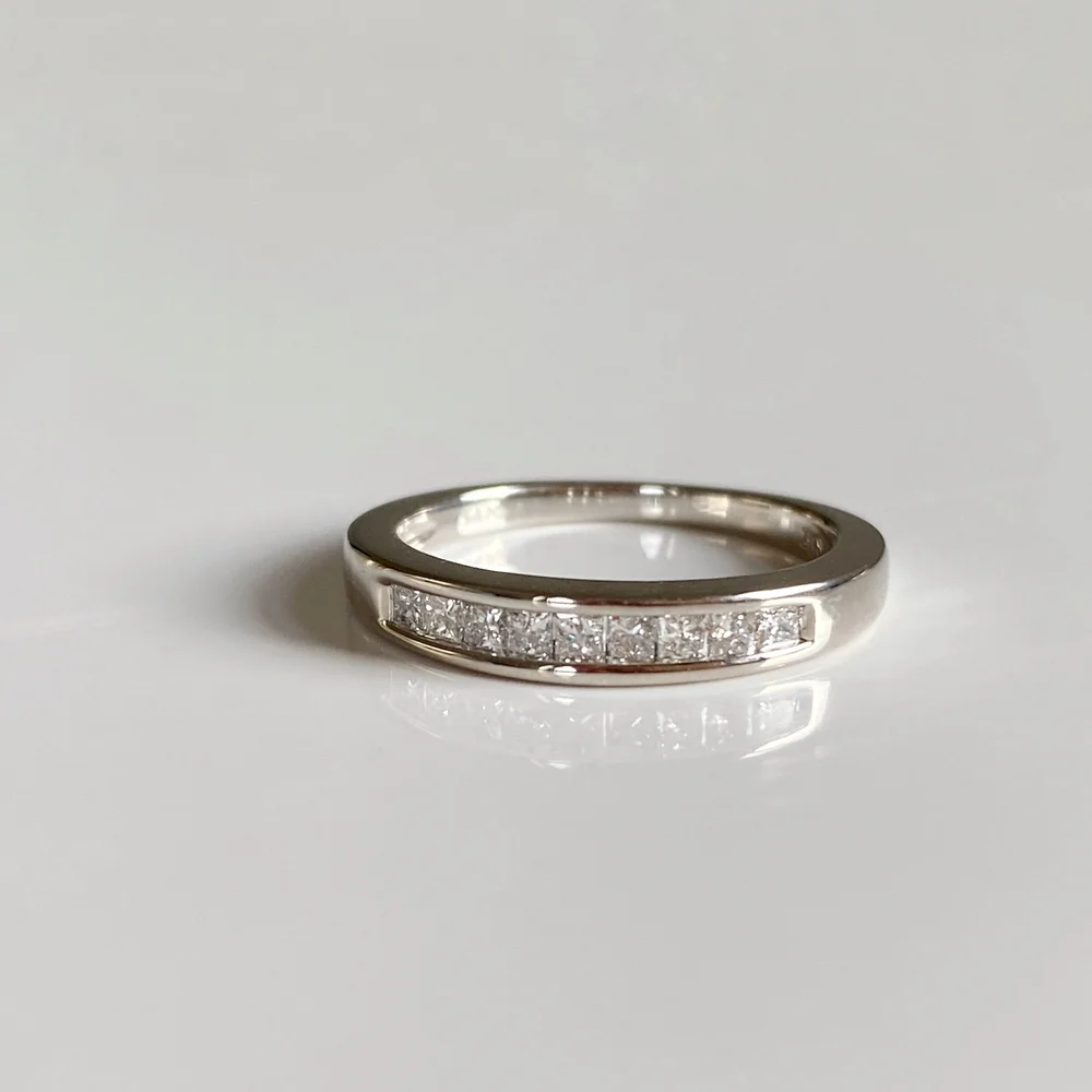 14k White Gold Ring Band with Chanel Set Diamonds Dagoret Very well made.