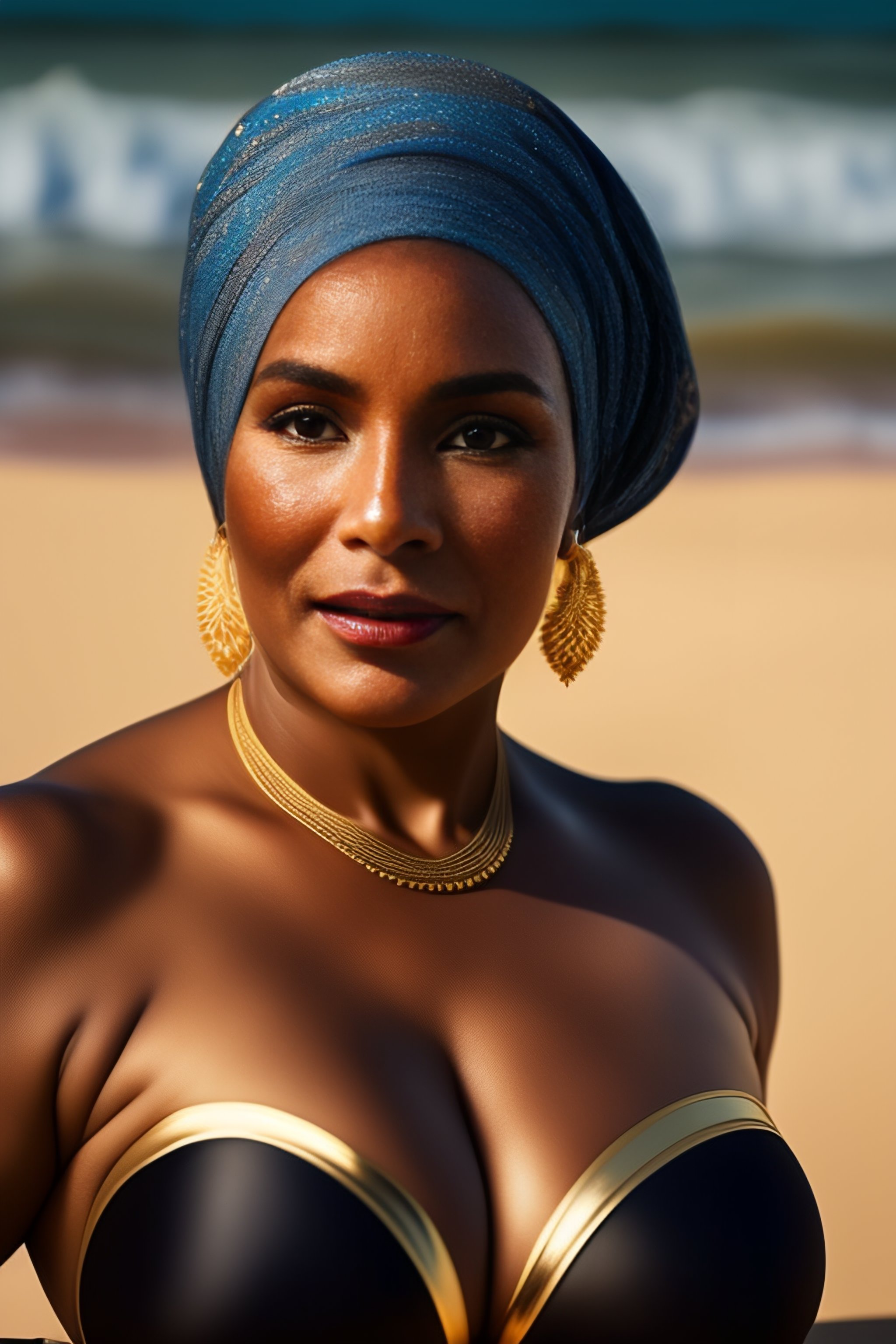 Lexica 60 years old woman in hijabi in bikini . high quality Very well made.