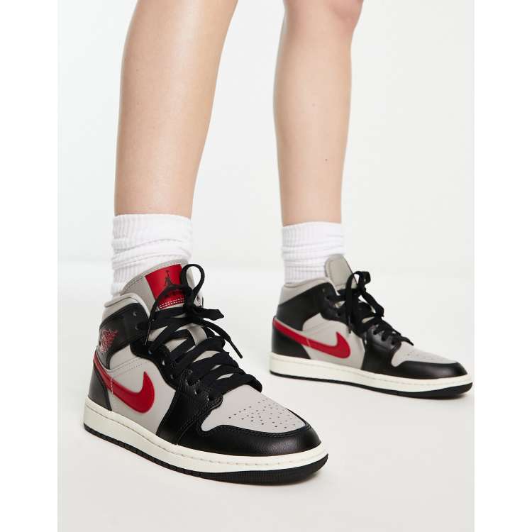 Air Jordan 1 Mid Sneakers alte nere grigio college e rosso Very well made.