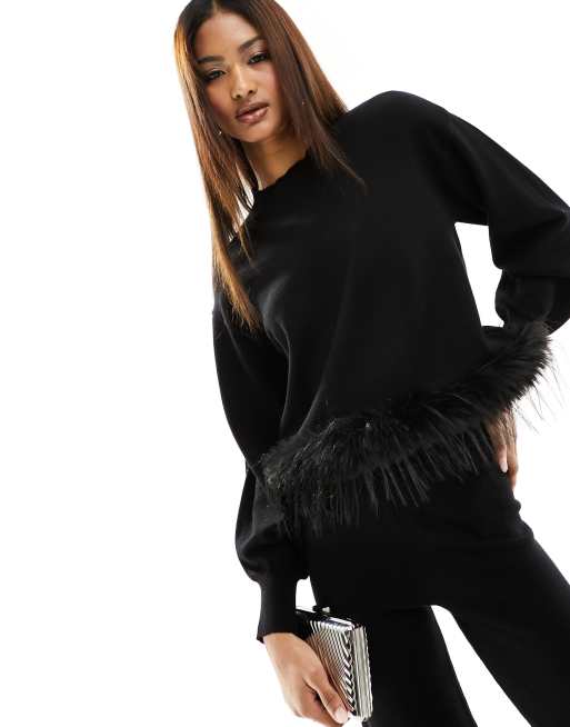Y.A.S faux feather trim jumper co ord in black ASOS Very well made.