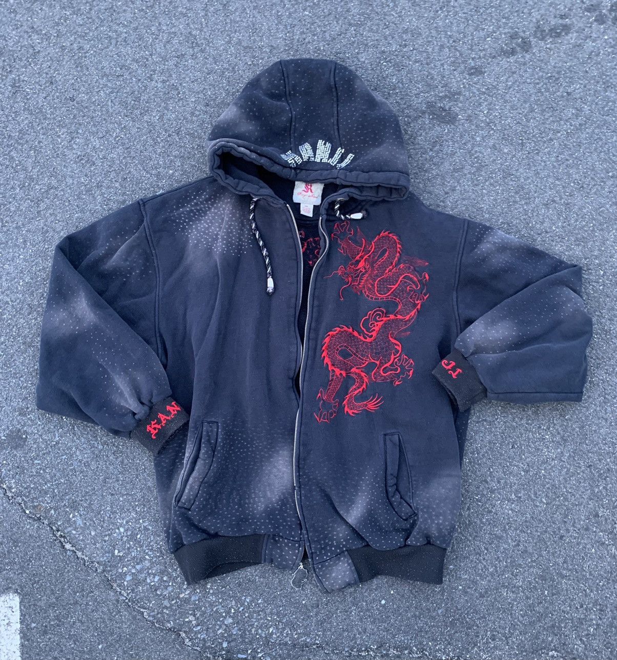 Vintage Y2k Kanji Jeans Embroidered Dragon Zip Up Hoodie Very well made.