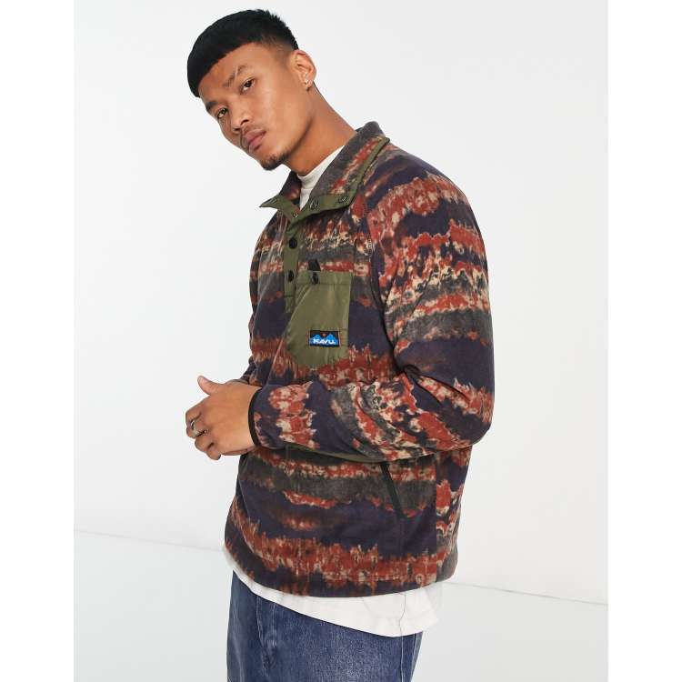 Kavu Teannaway snap neck fleece in red and navy tie dye print Very well made.