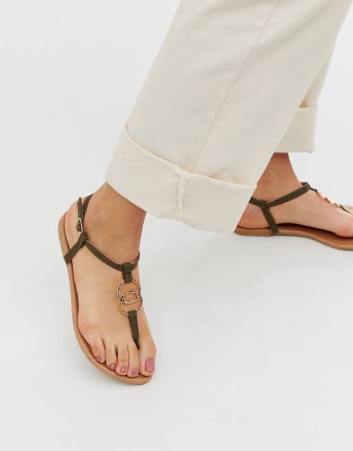 New Look ring detail flat sandal in khaki ASOS Very well made.