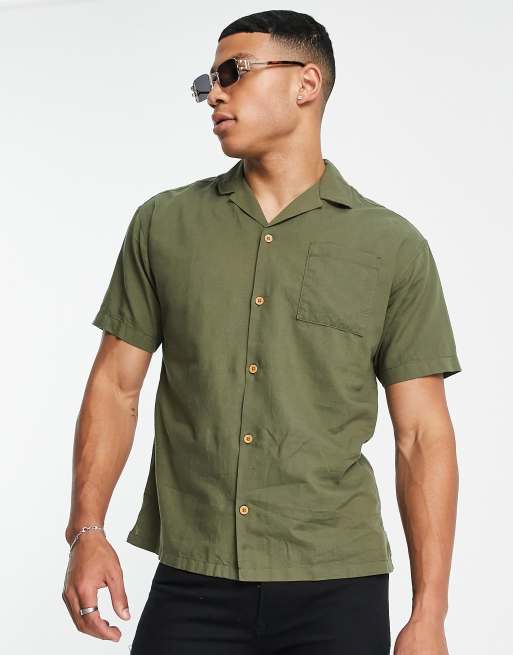 Jack Jones Essentials linen short sleeve shirt with revere collar in khaki Very well made.