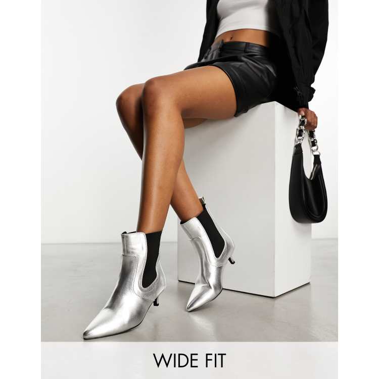 RAID Wide Fit Cedar kitten heeled ankle boot in silver ASOS Very well made.