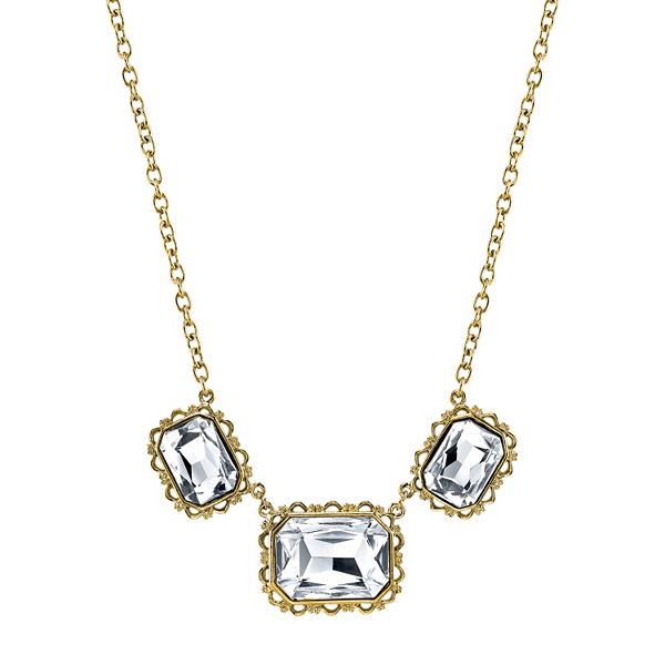 1928 Jewelry Silver Tone Crystal Pendant Necklace Very well made.