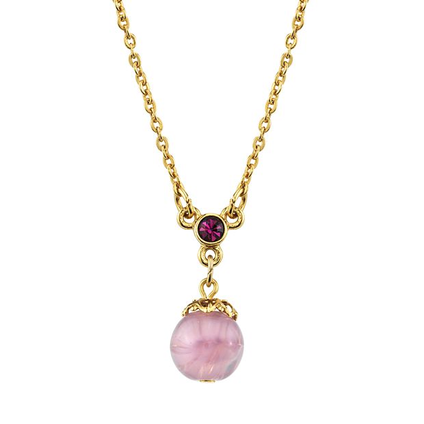 1928 Jewelry Gold Tone Light Amethyst Colored Bead Pendant Necklace Very well made.