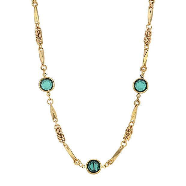 1928 Gold Tone Green Crystal Necklace Very well made.