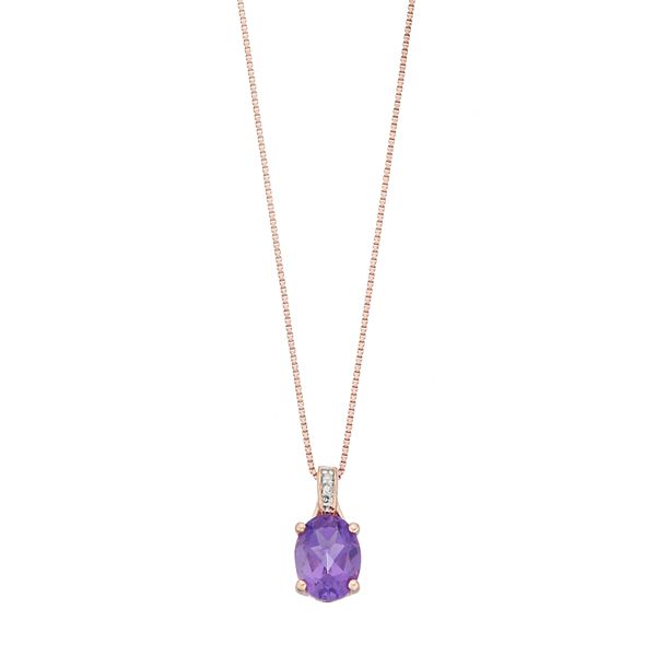 Gemminded 14k Rose Gold Over Silver Amethyst Diamond Accent Oval Pendant Necklace Very well made.