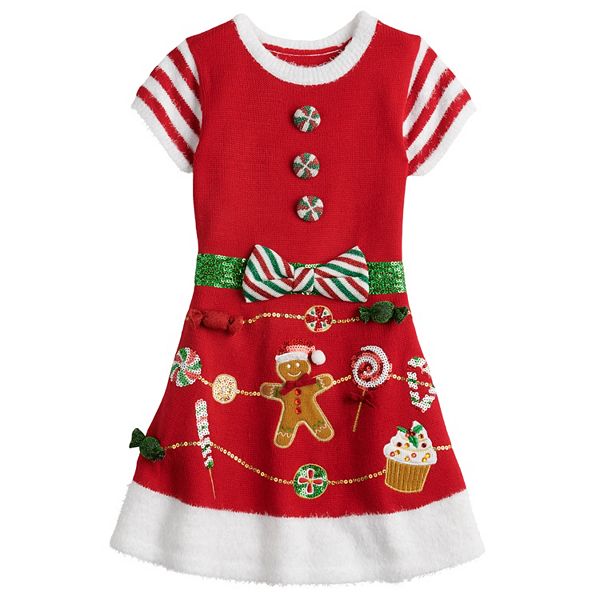 Girls 7 16 Celebrate Togehter Gingerbread Christmas Cookie Sweater Dress in Regular Plus Very well made.
