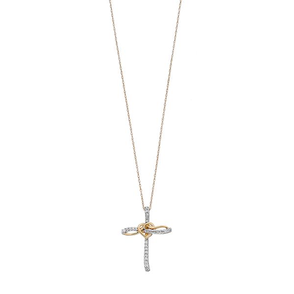 10k Two Tone Gold 1 10 Carat T.W. Diamond Cross Pendant Very well made.