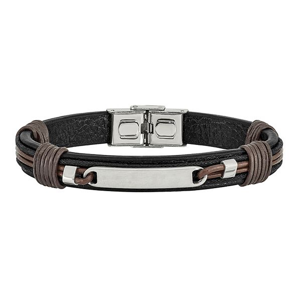 Men s Stainless Steel Black Brown Leather Bracelet Very well made.